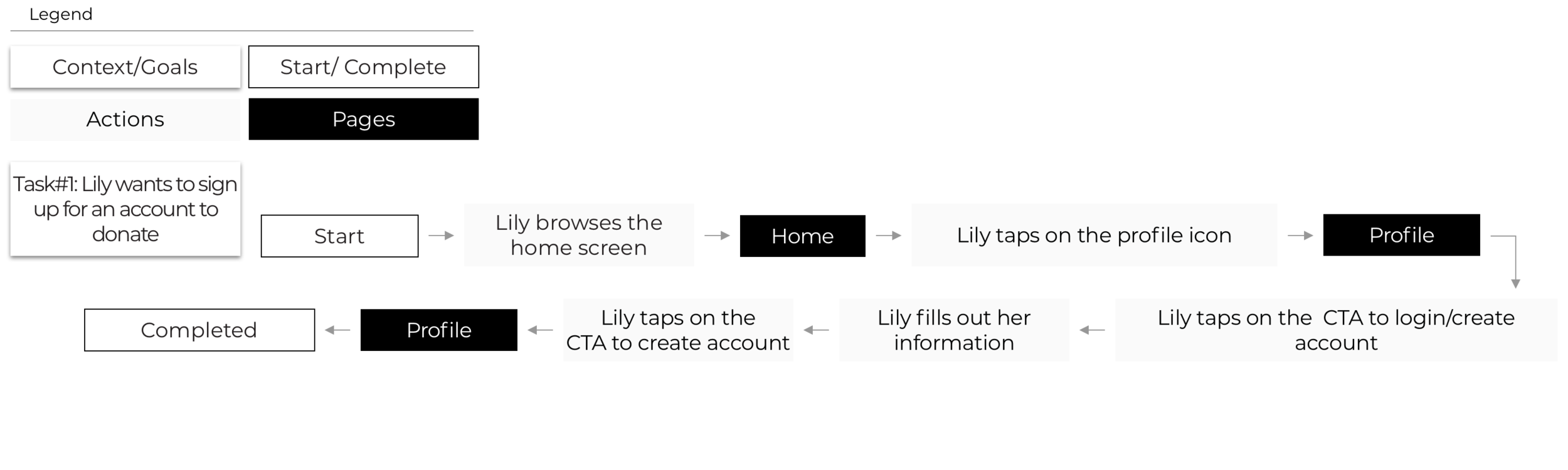 Scenario#1: Lily is browsing for a donation app. She finds Kai and is interest. She wants to create an account to donate