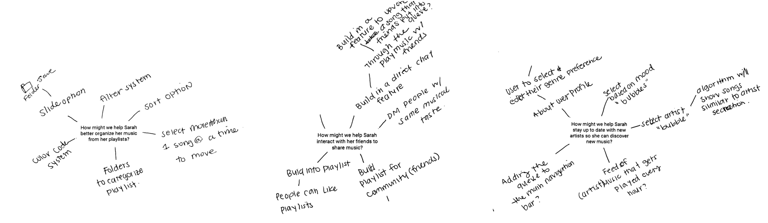 I facilitated a group brainstorming session for all the HMW questions using the round-robin method. We went around and each participant had one minute to share an idea that they had for each HMW. Then as a group, we collectively discussed each idea and voted for the best idea for each HMW.