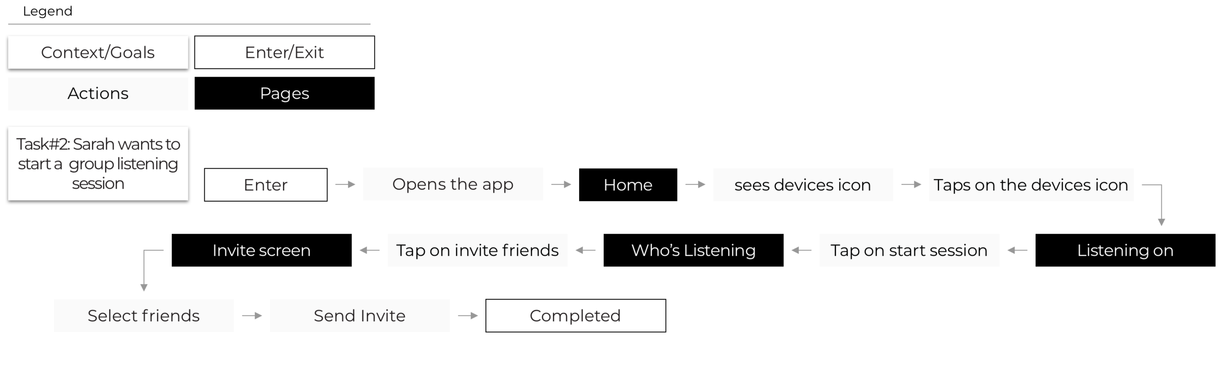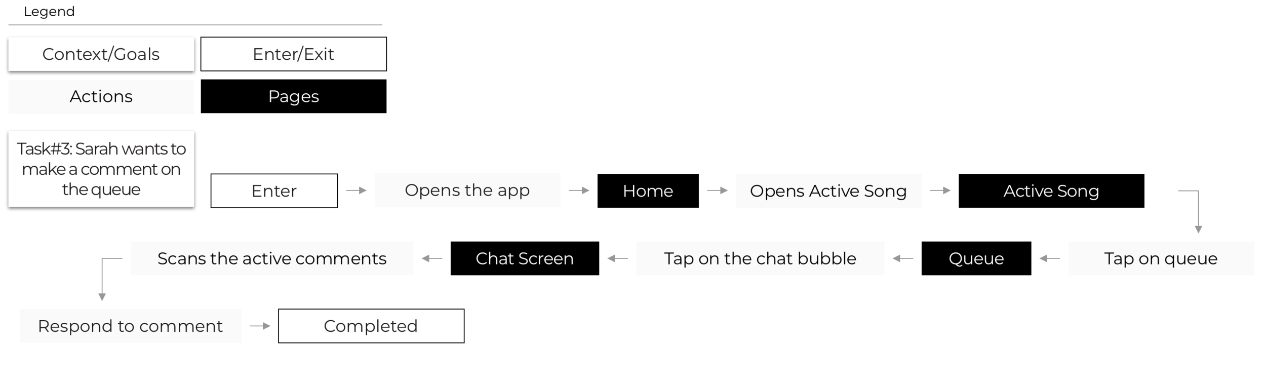 I defined potential tasks Users may take when interacting with Spotify. I created a flow diagram to understand a path that a user could take to complete the task.