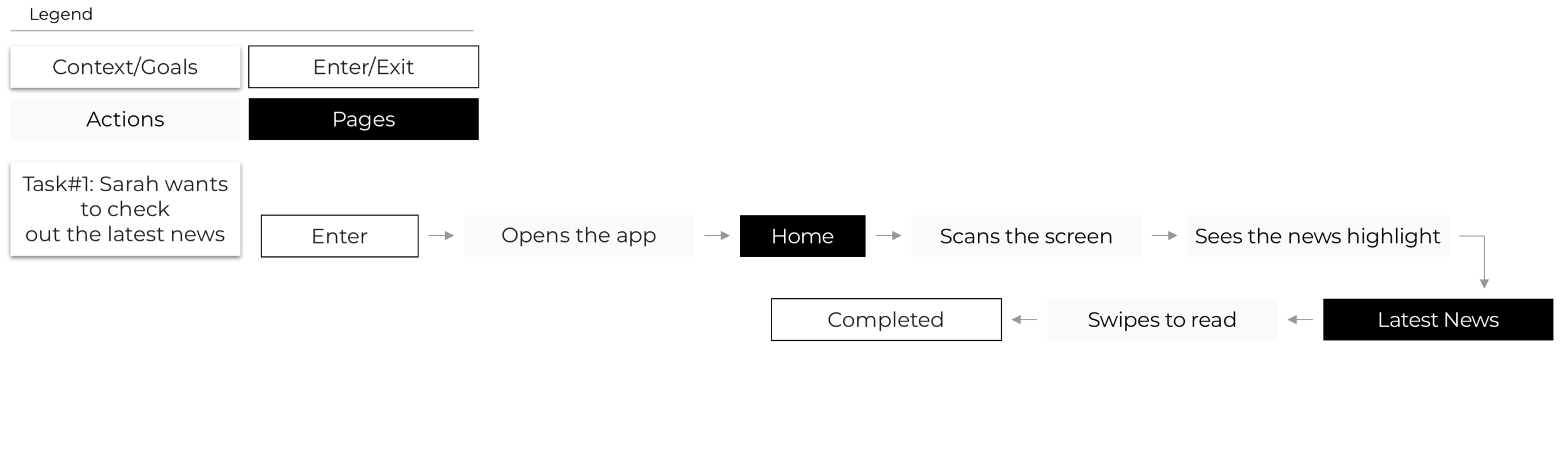 A document that outlined the User Interface for users to complete their tasks, this document will get updated throughout the design process. I created the pages based on my task flow, user flow, The scenarios are based on my user’s point of view.